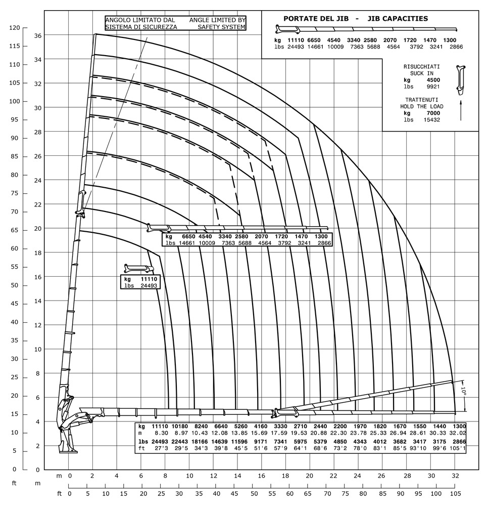 | Гидравлический вылет | 32020 mm | 105'1" |