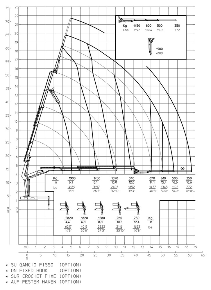 | Вылет с ручными удлинителями | 18600 mm | 61' |