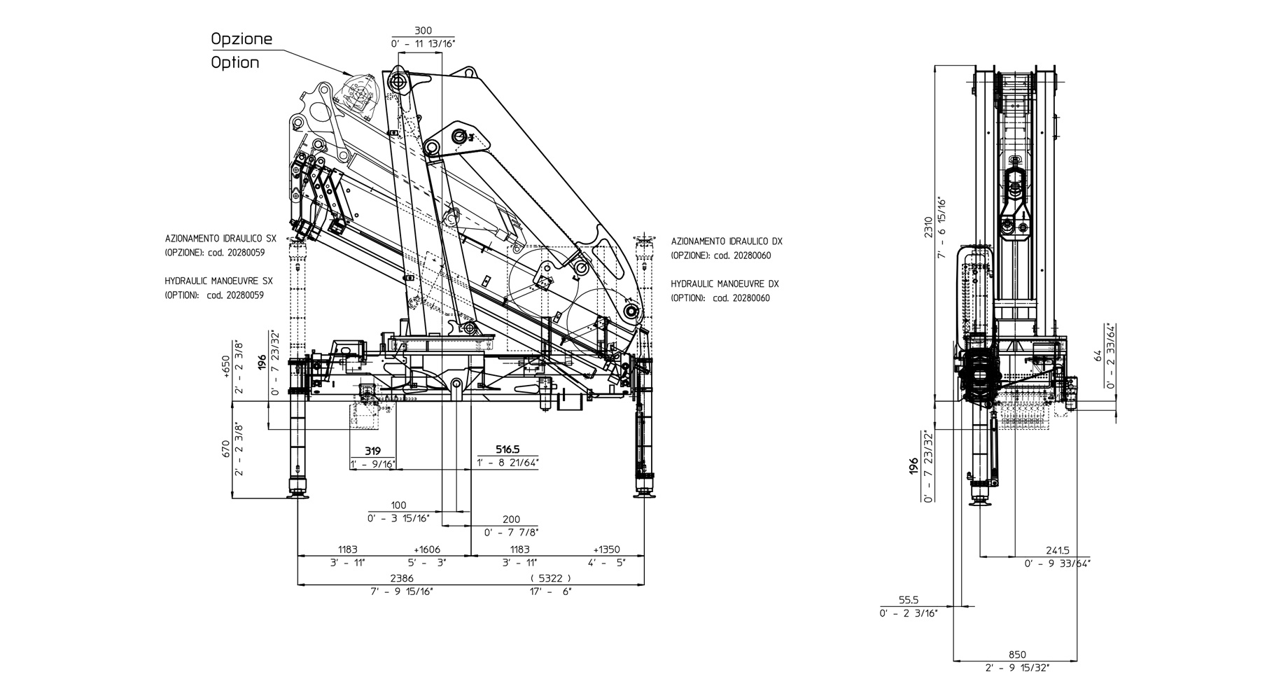 | Гидравлический вылет | 16600 mm | 54'6" |