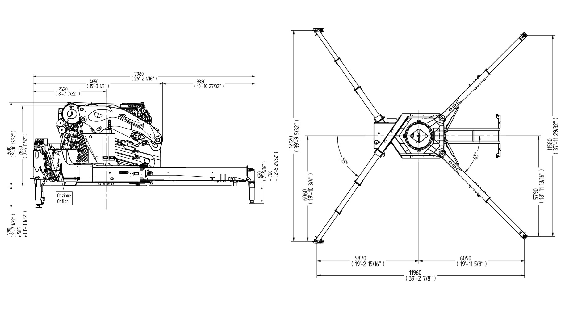 | Гидравлический вылет | 35650 mm | 116'12" |