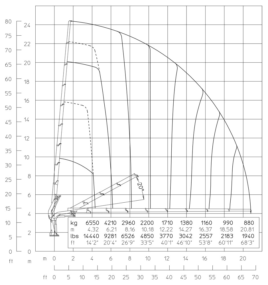 | Гидравлический вылет | 20810 mm | 68'3" |