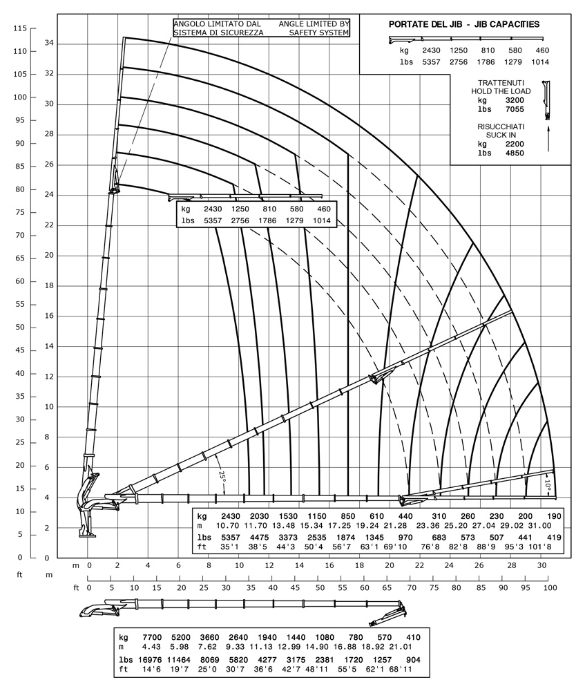 | Гидравлический вылет | 31000 mm | 101'8" |