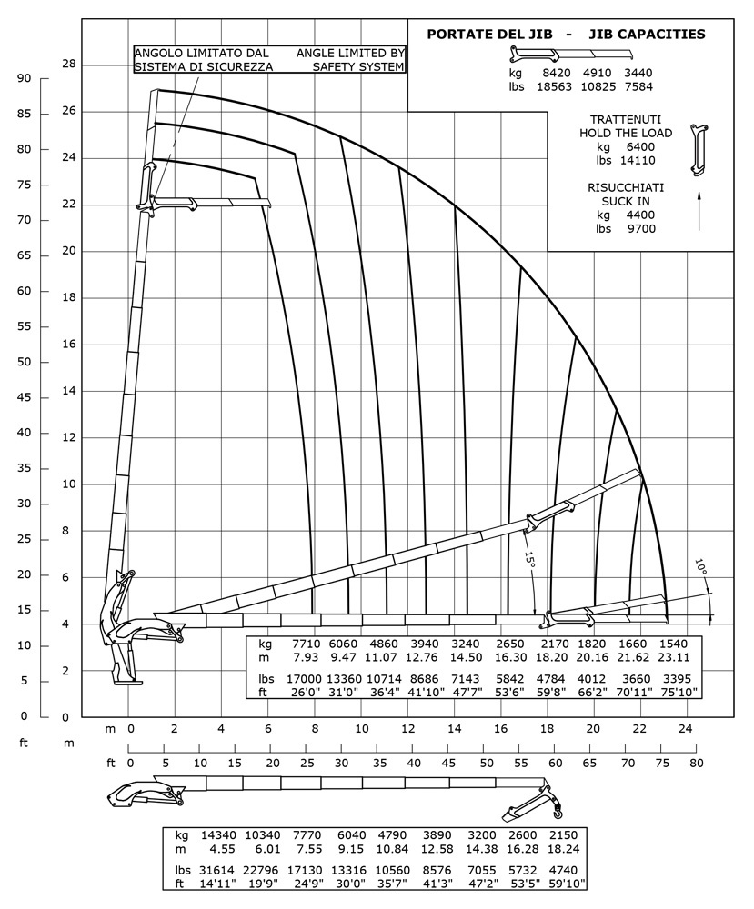 | Гидравлический вылет | 23110 mm | 75'10" |