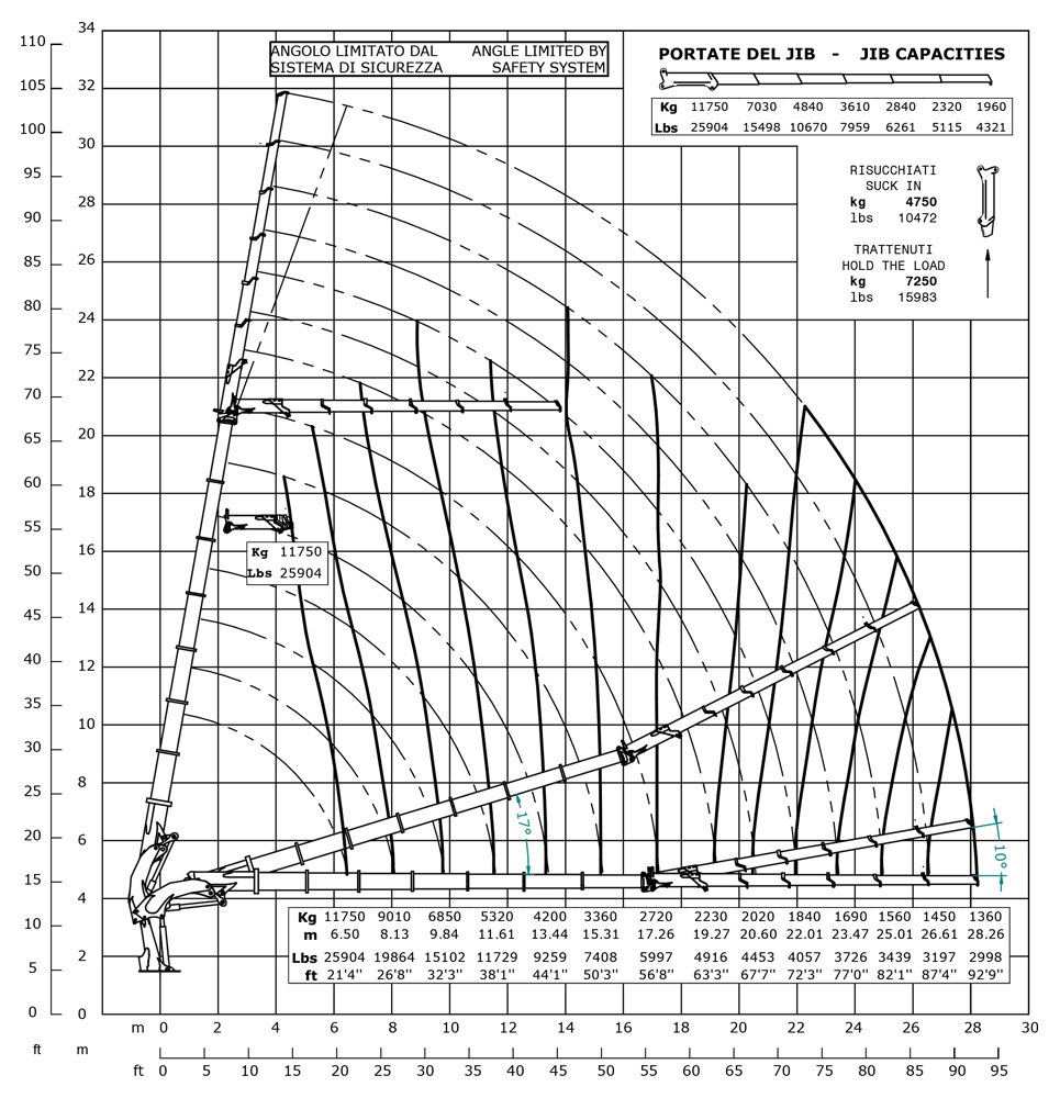 | Гідравлічний виліт | 28260 mm | 92'9" |