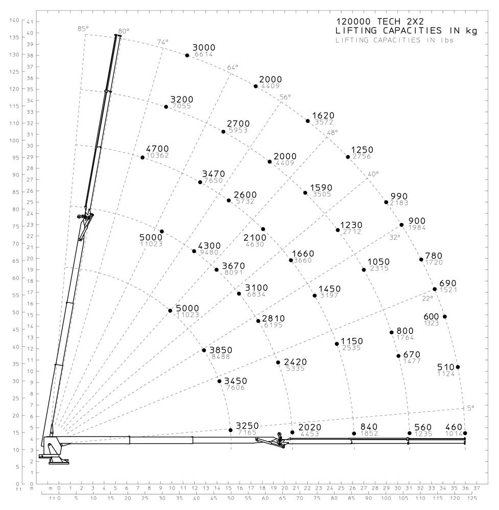 | Гідравлічний виліт | 35930 mm | 117'11" |