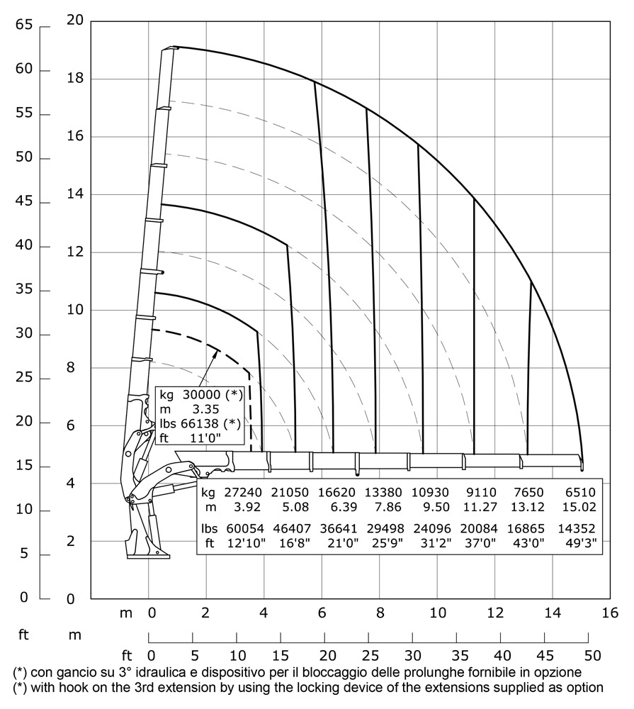 | Гідравлічний виліт | 15020 mm | 49'3" |