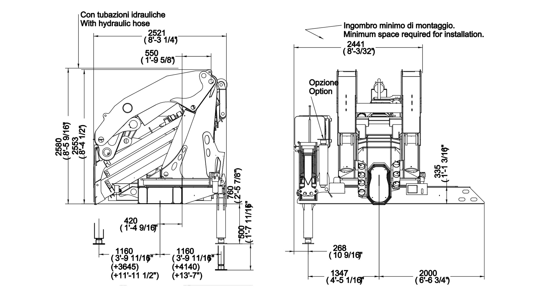 | Винос стабілізаторів | 4140 + 3645 mm | 13'7" + 12' |