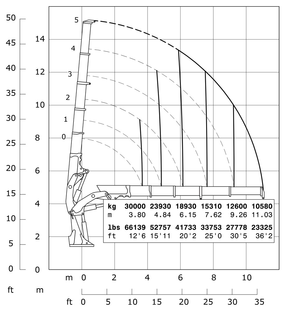 | Гідравлічний виліт | 11030 mm | 36'2" |