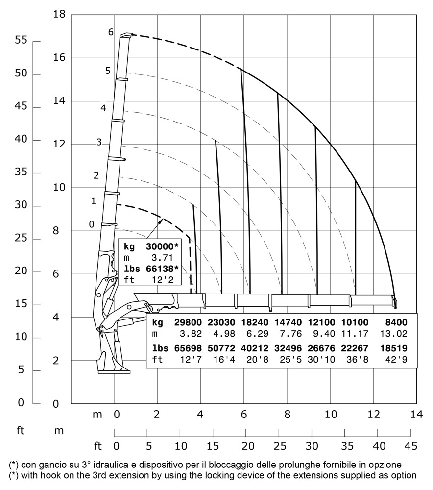 | Гідравлічний виліт | 13020 mm | 42'9" |