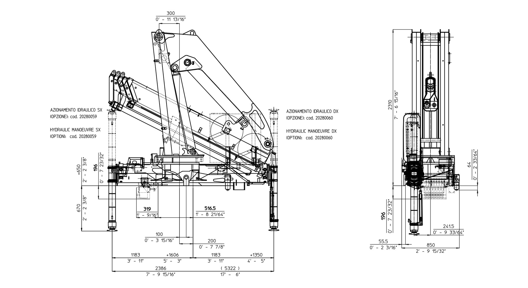 | Виліт із ручними подовжувачами | 16500 mm | 54'2" |