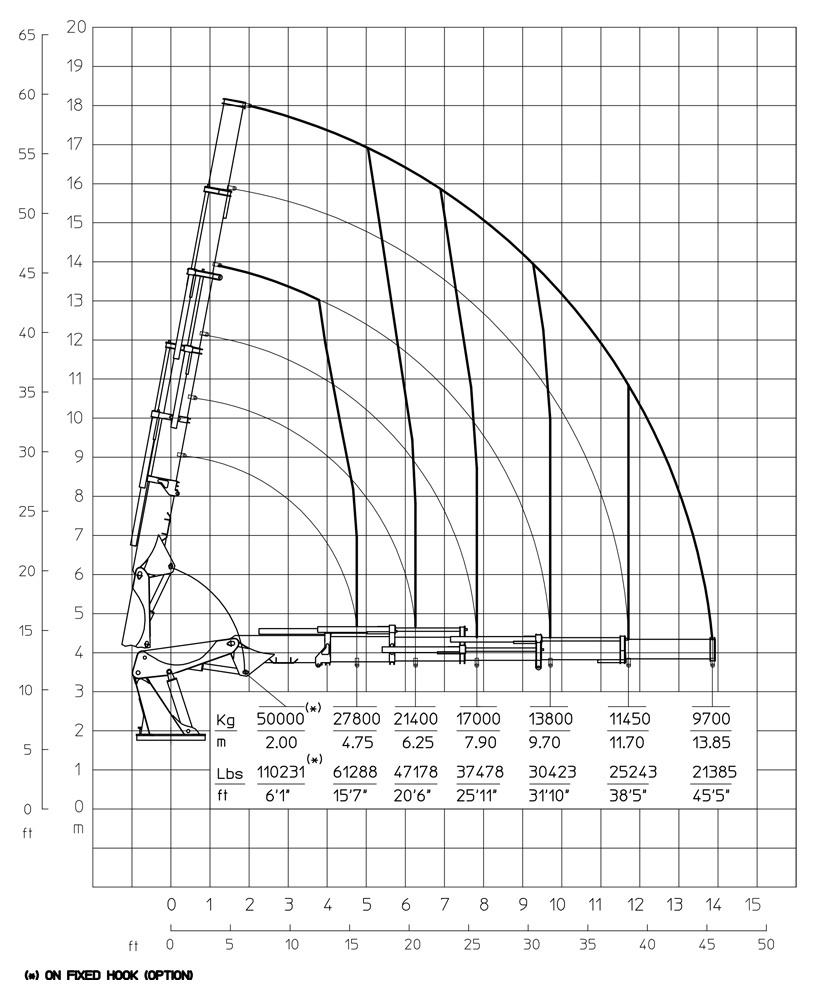 | Гідравлічний виліт | 13850 mm | 45'5" |