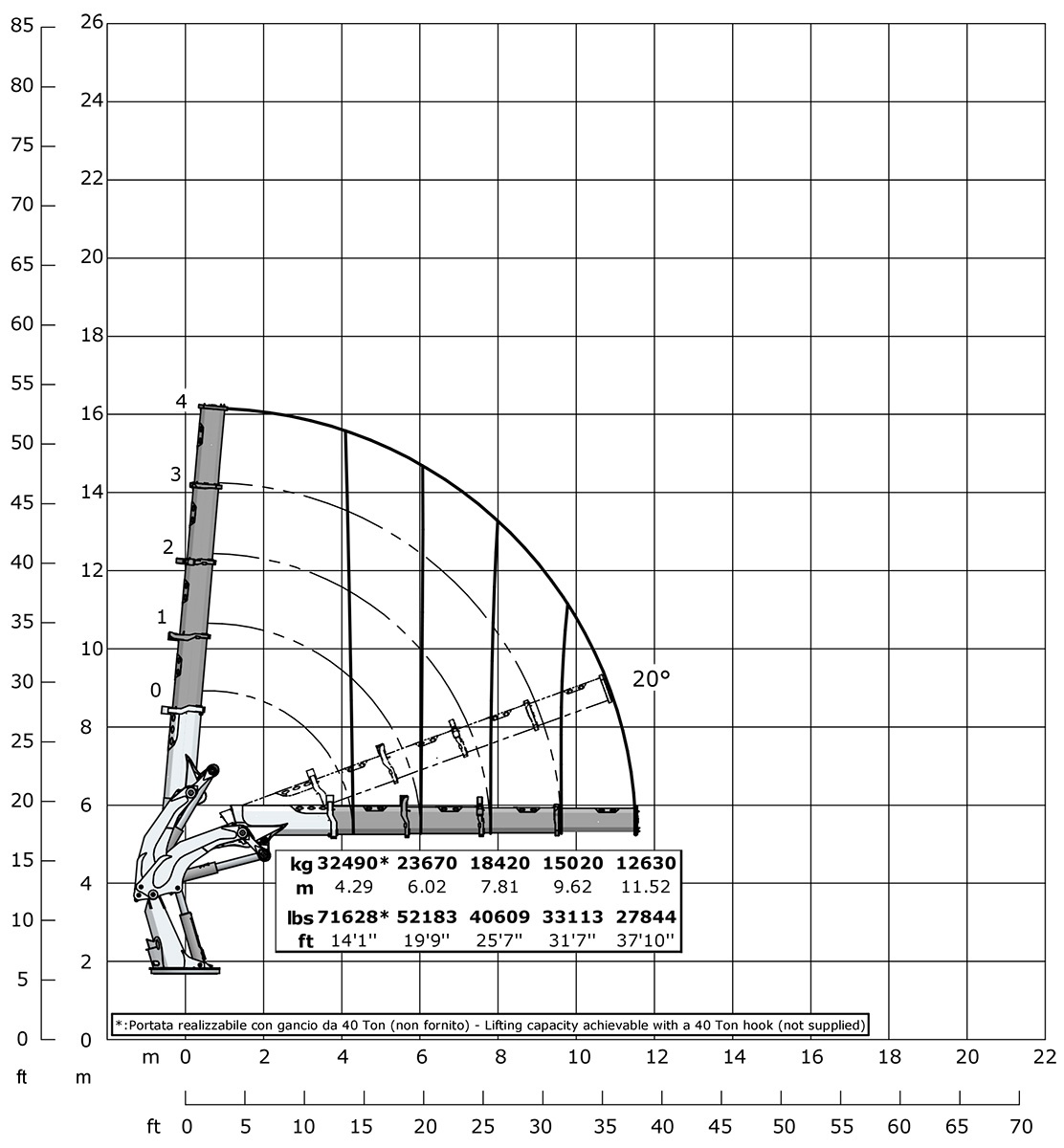 | Гідравлічний виліт | 11520 mm | 37'10" |