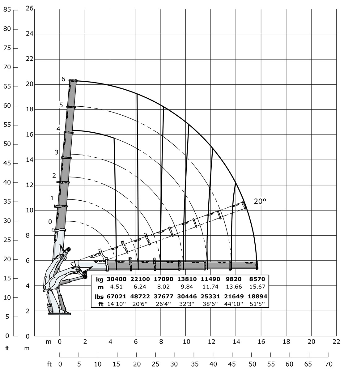 | Гідравлічний виліт | 15670 mm | 51'5" |