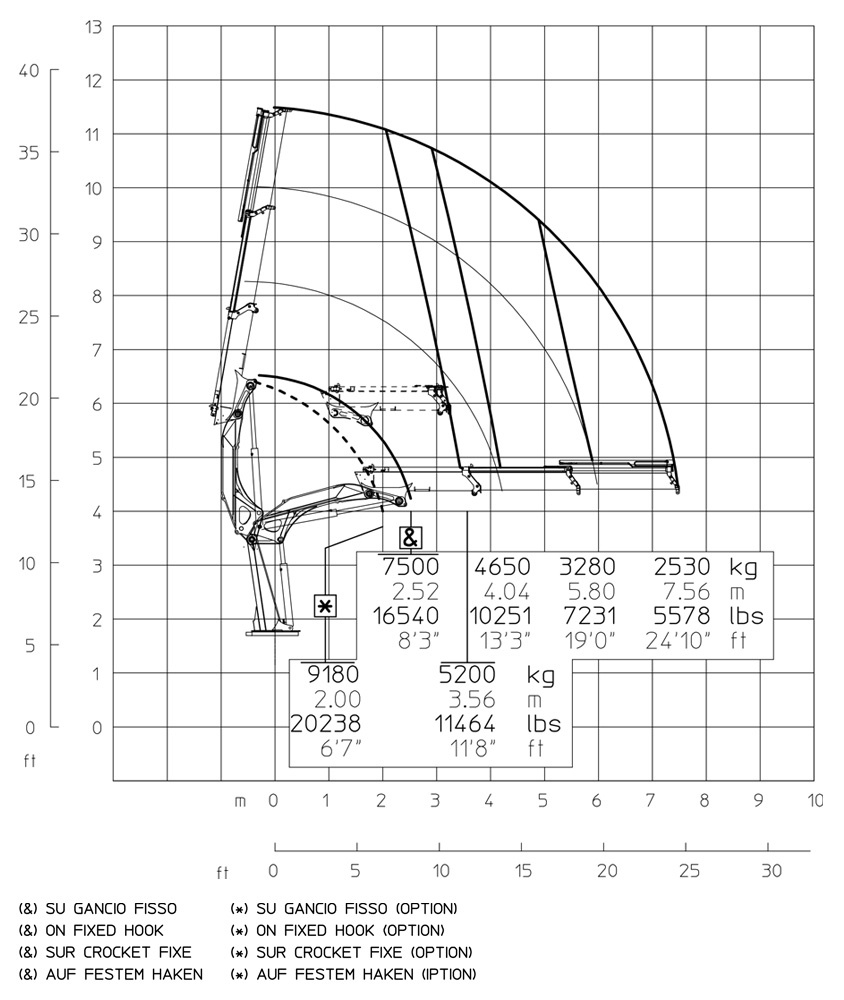 | Виліт із ручними подовжувачами | 13700 mm | 44'11" |