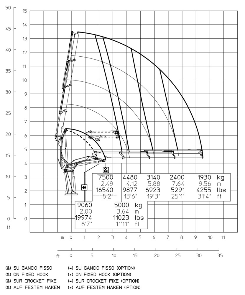 | Гідравлічний виліт | 9560 mm | 31'4" |