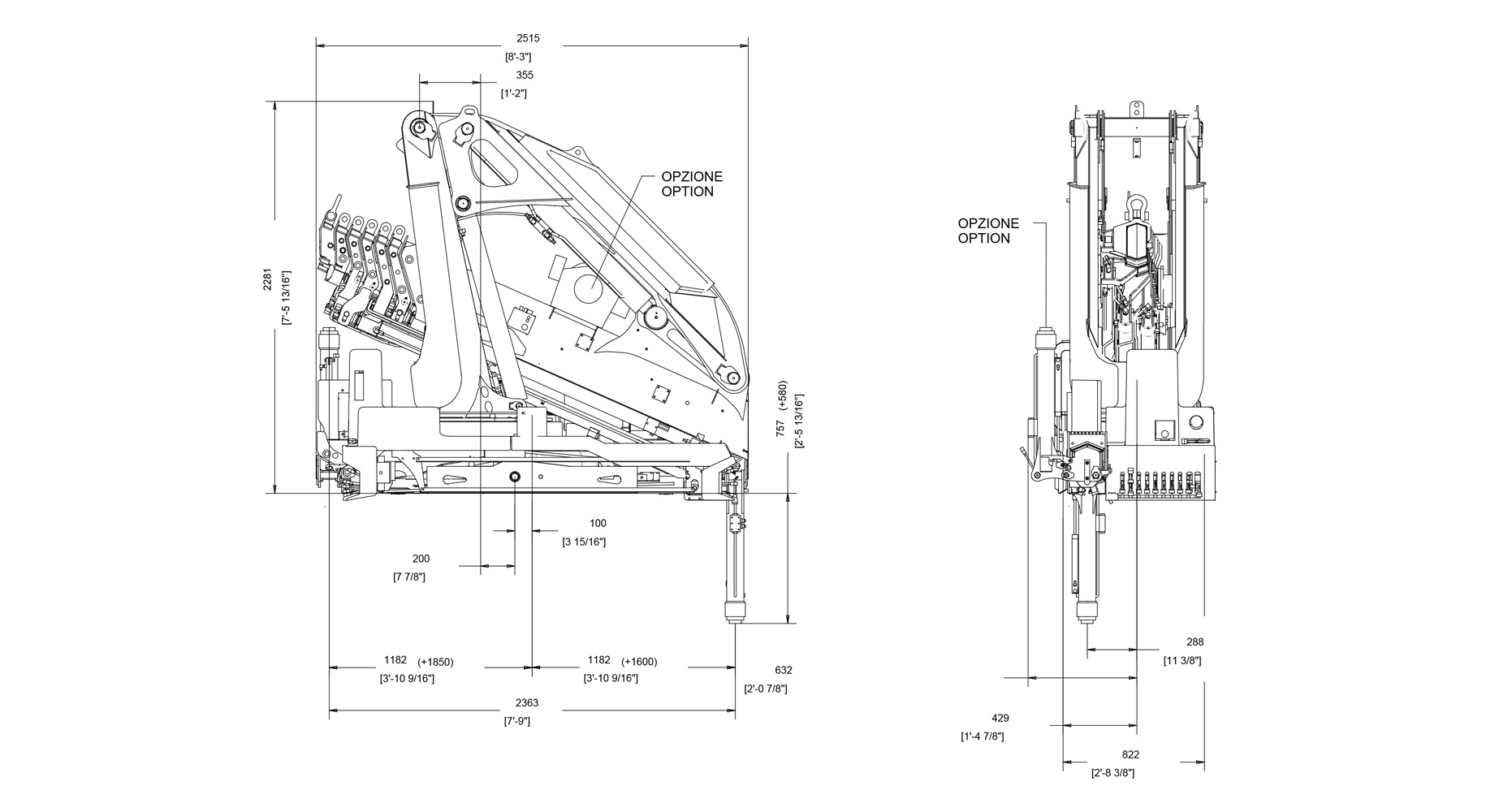 | Гідравлічний виліт | 13700 mm | 44'11" |