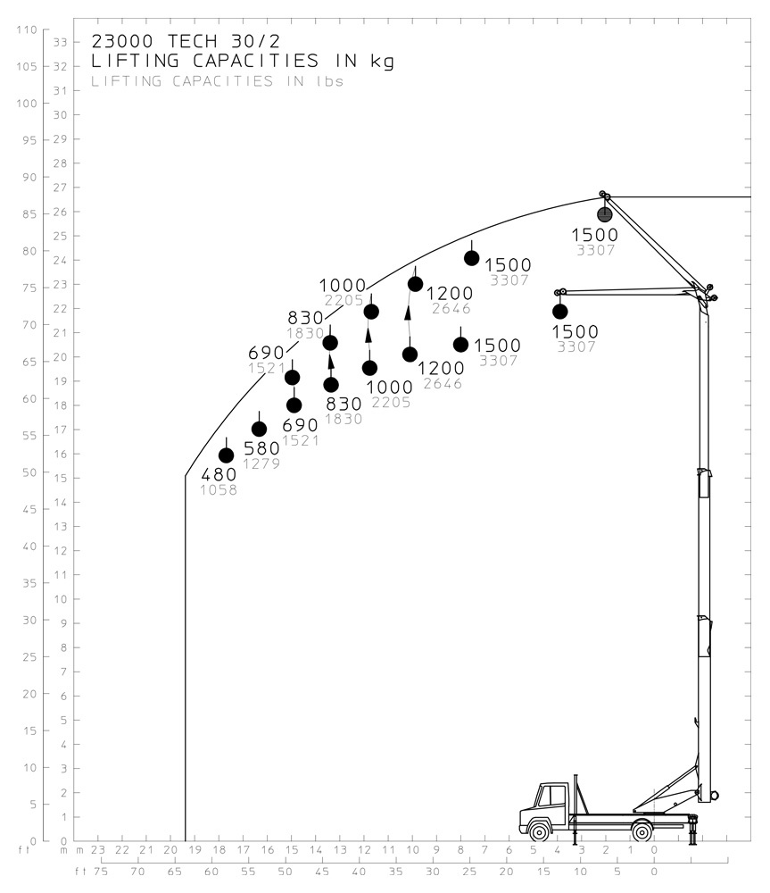| Гідравлічний виліт | 19380 mm | 63'7" |
