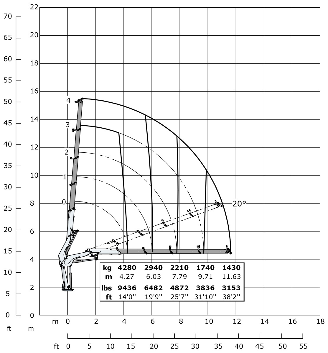 | Гідравлічний виліт | 11360 mm | 38'2" |