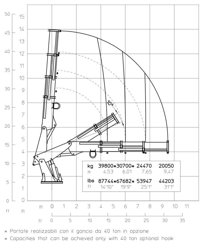 | Гідравлічний виліт | 9470 mm | 31'1" |