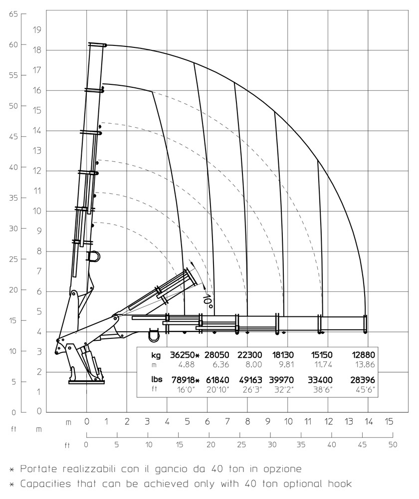 | Гідравлічний виліт | 13860 mm | 45'6" |