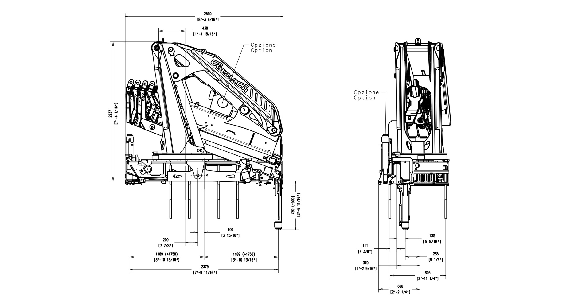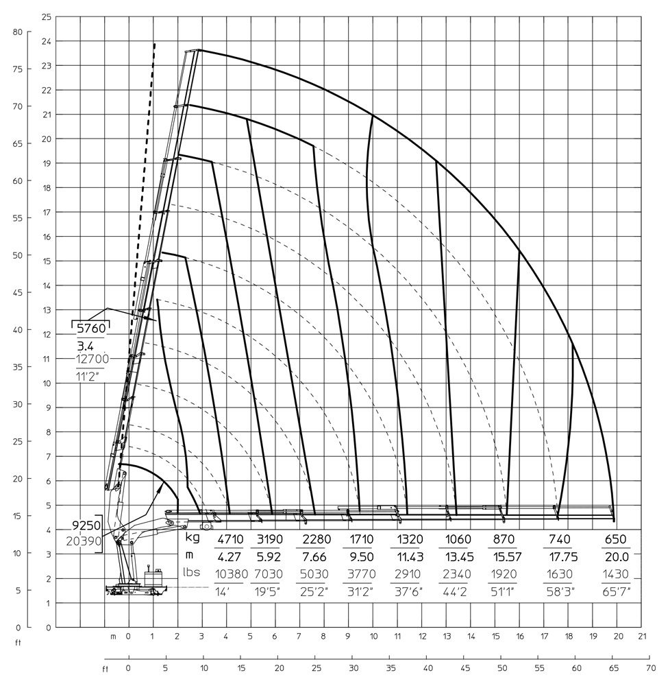 | Гідравлічний виліт | 20000 mm | 65'7" |