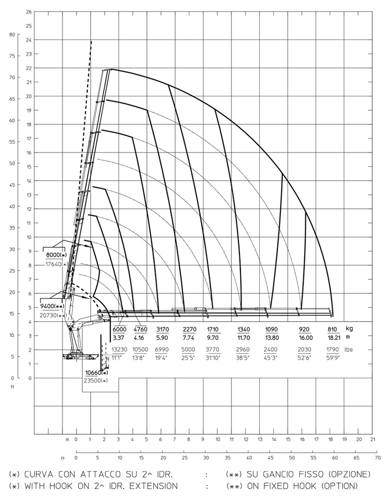 | Гідравлічний виліт | 18210 mm | 59'9" |