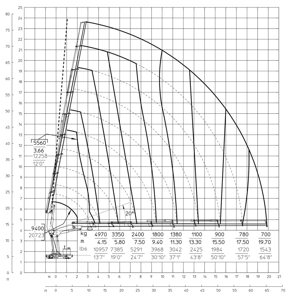 | Гідравлічний виліт | 19700 mm | 64'8" |