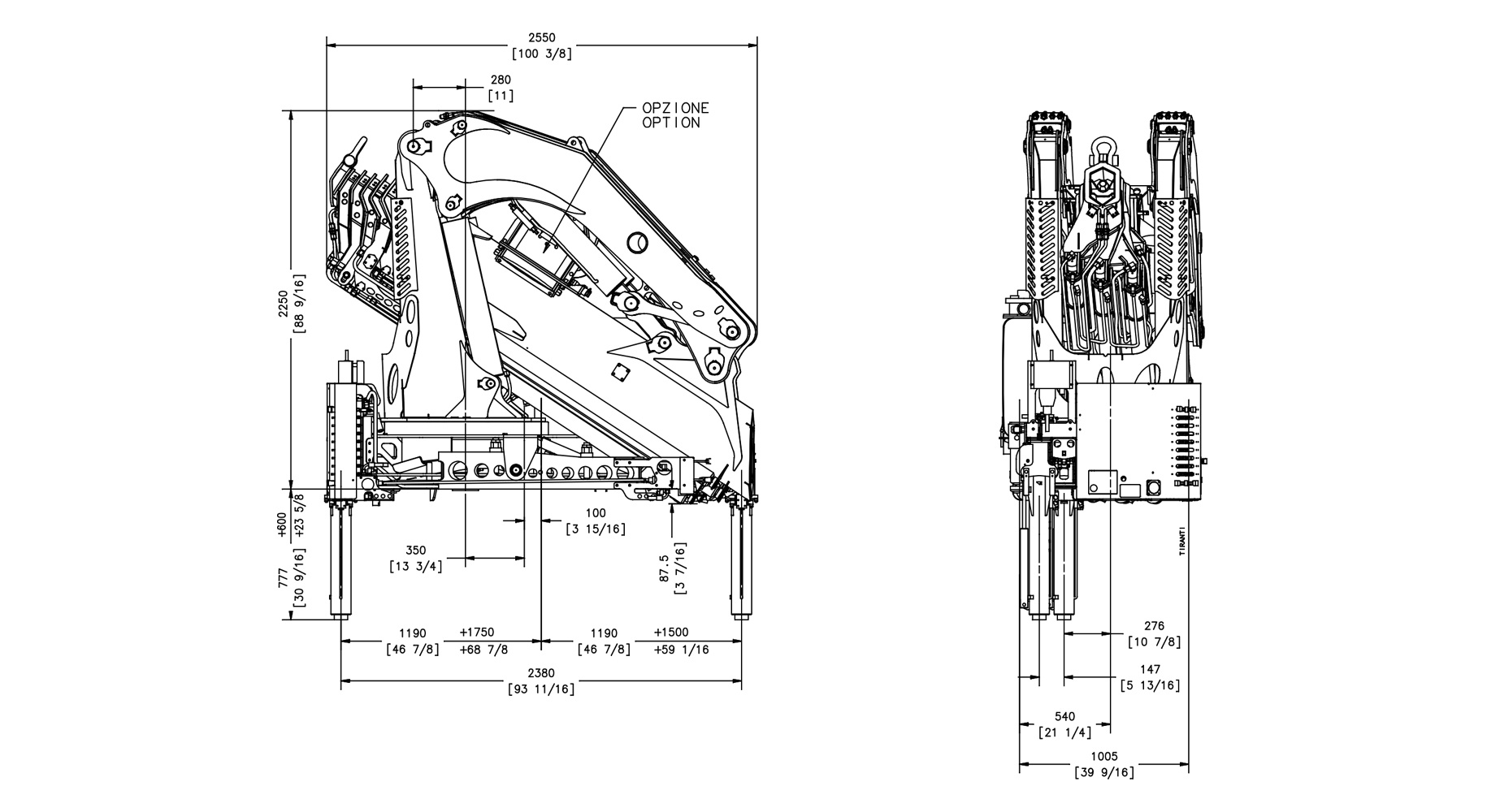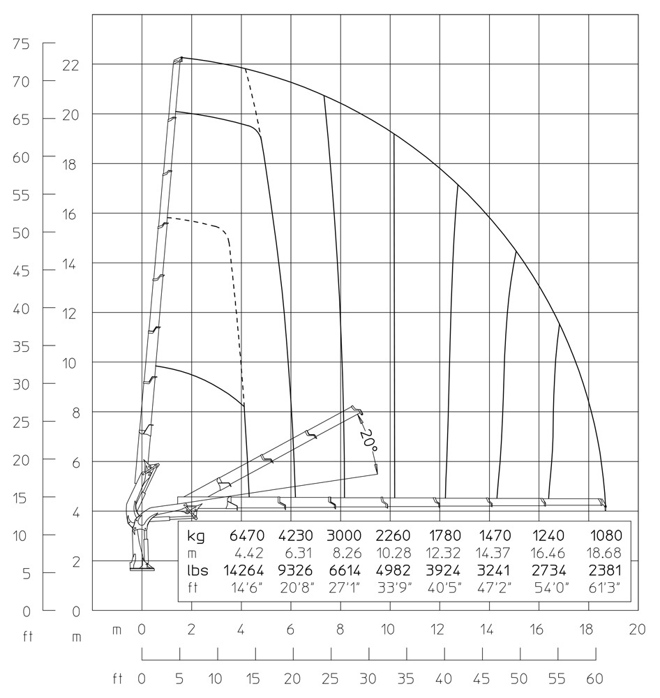 | Гідравлічний виліт | 18680 mm | 61'3" |