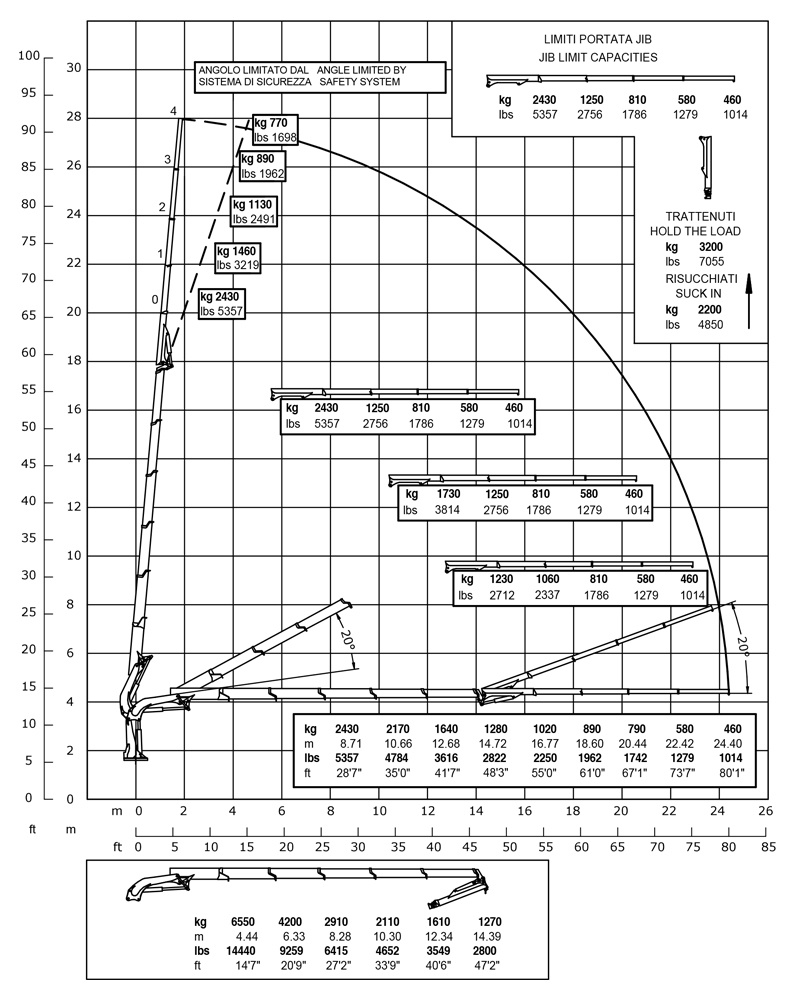 | Гідравлічний виліт | 24400 mm | 80'1" |