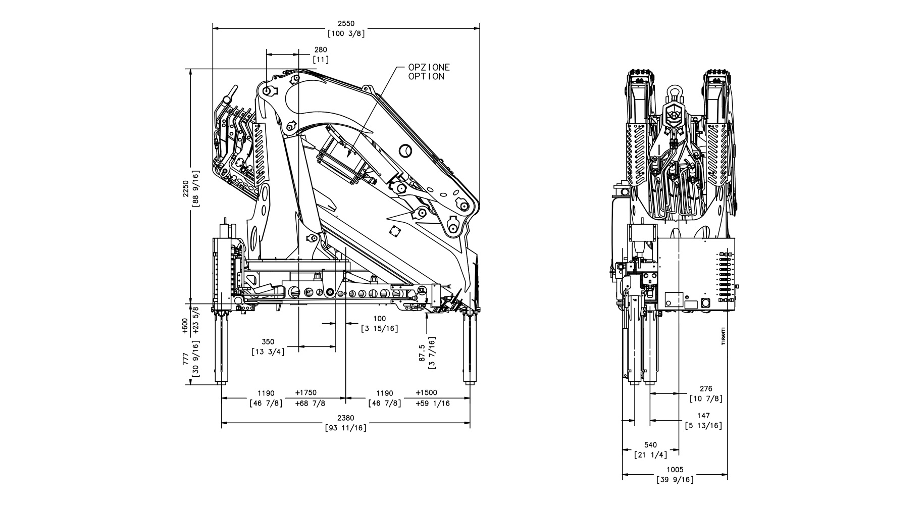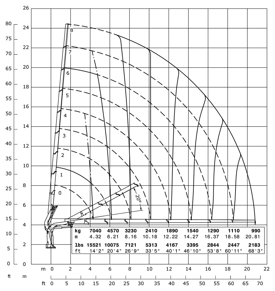 | Гідравлічний виліт | 2081 mm | 68'3" |