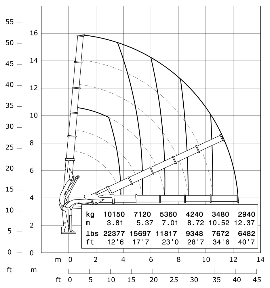 | Гідравлічний виліт | 12370 mm | 40'7" |