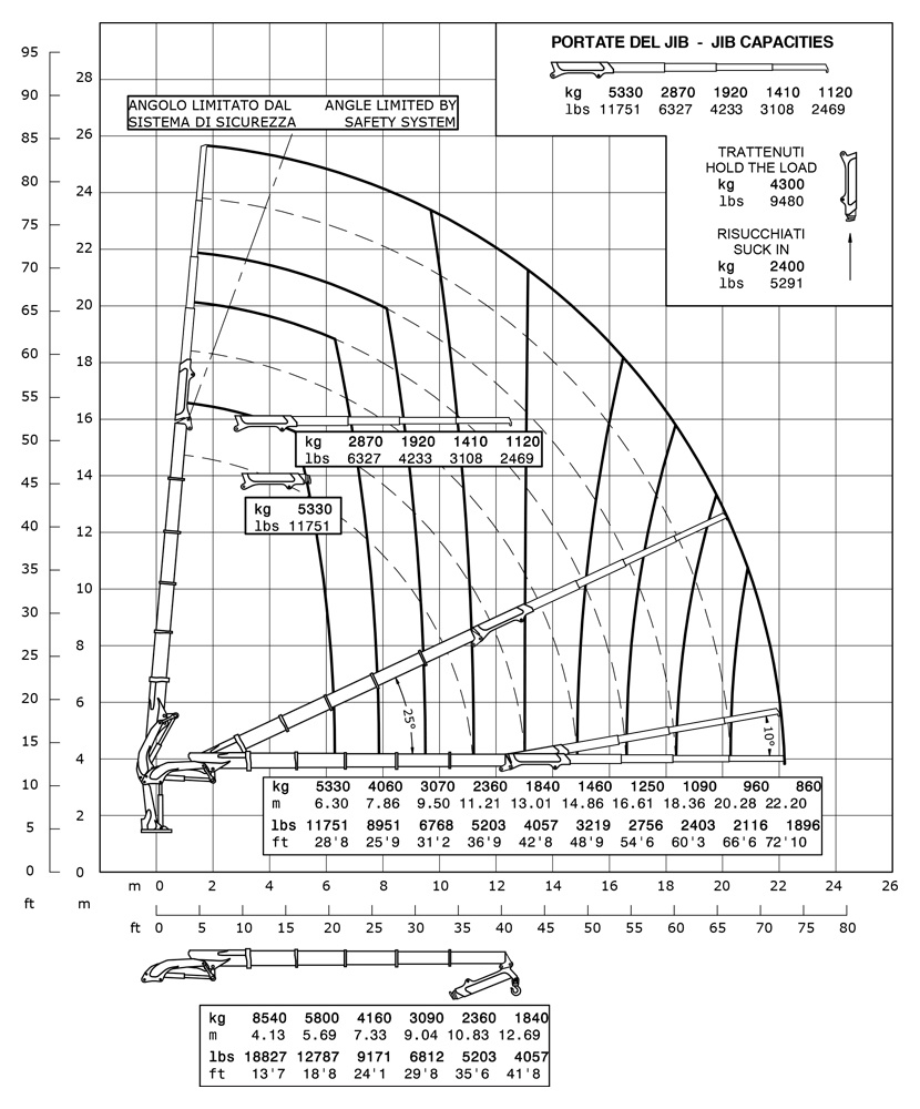 | Гідравлічний виліт | 22200 mm | 72'10" |