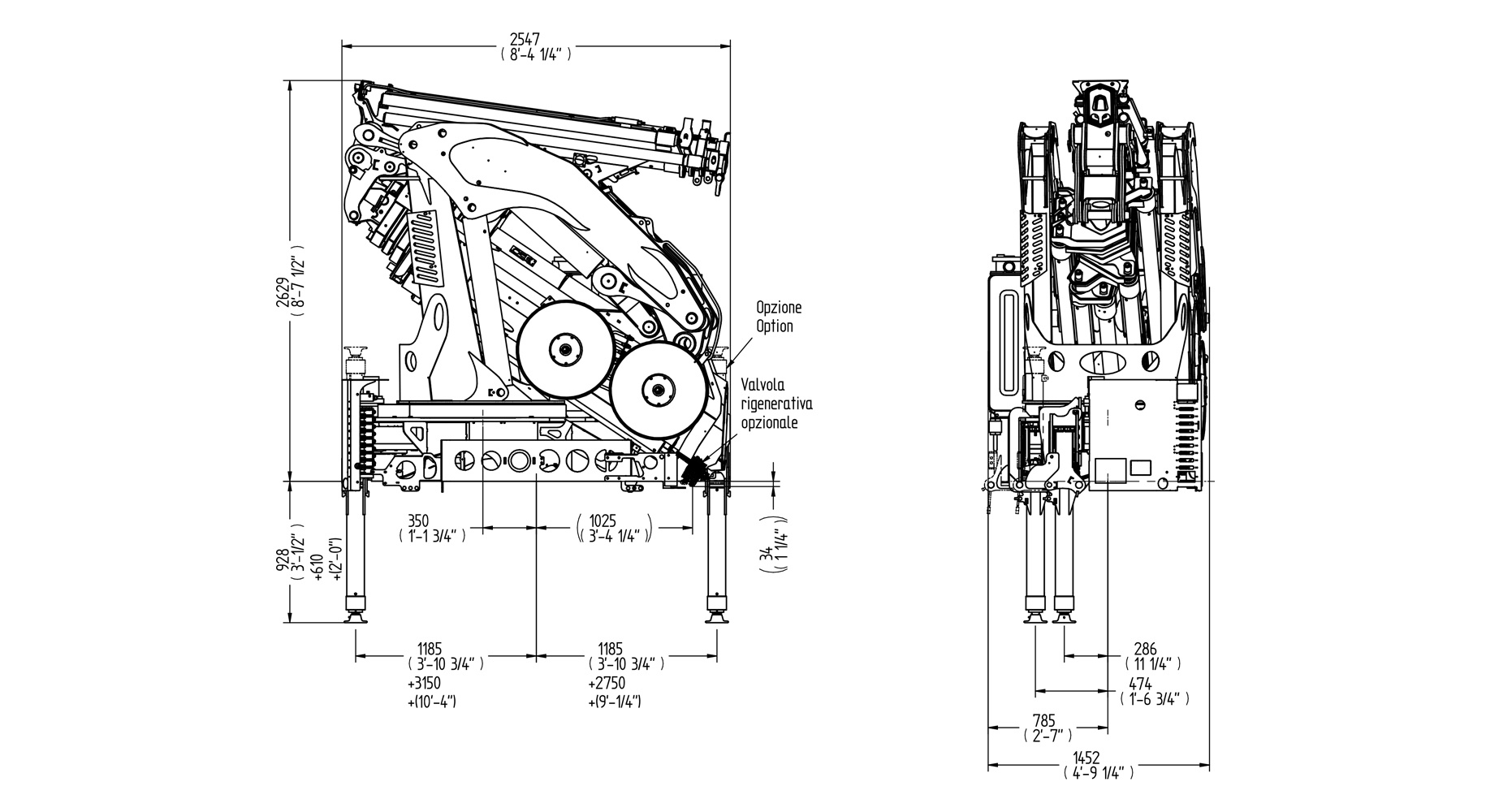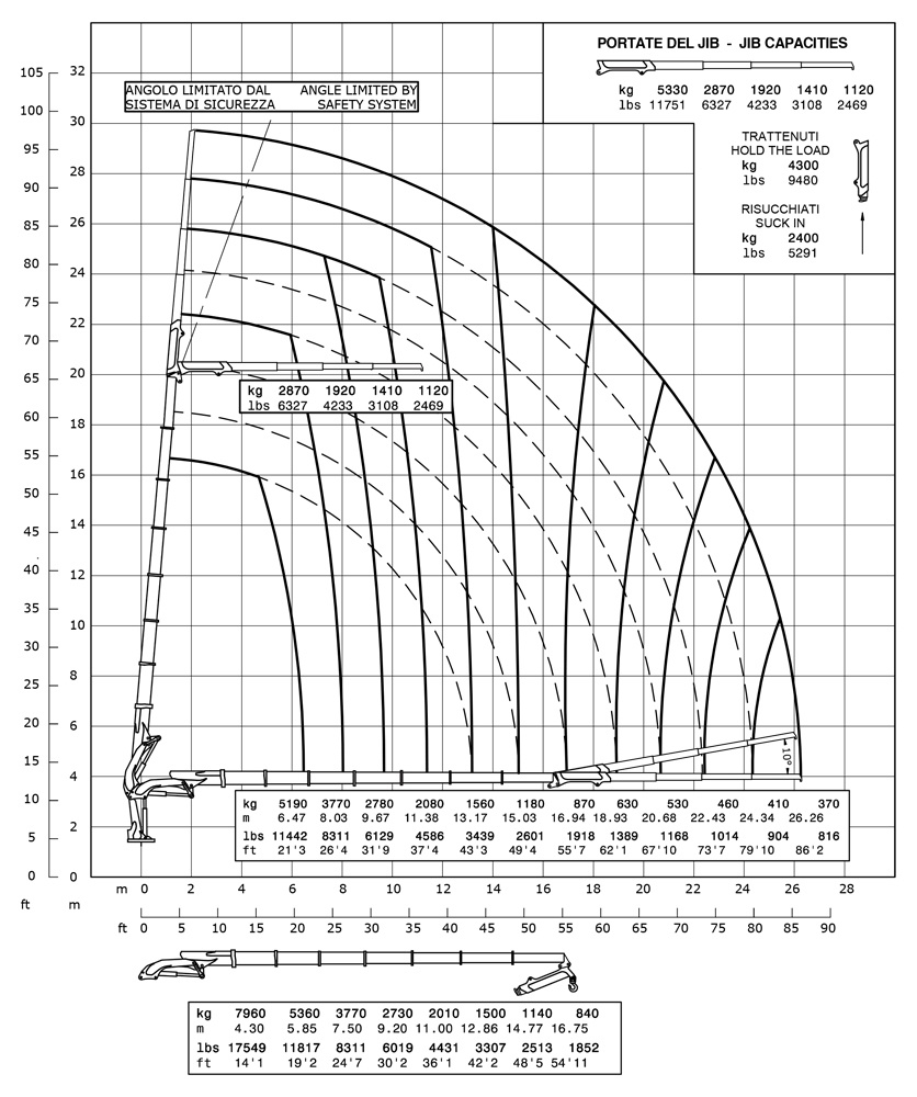 | Гідравлічний виліт | 26260 mm | 86'2" |