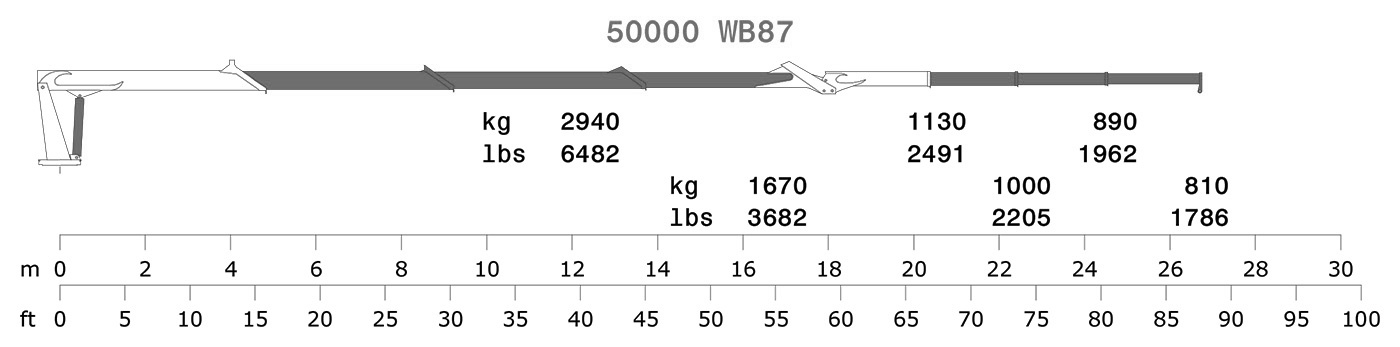 | Гідравлічний виліт | 26700 mm | 87'7'' |