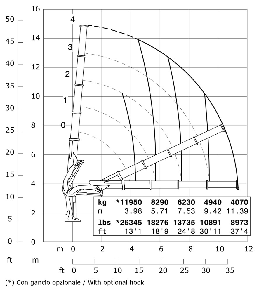 | Гідравлічний виліт | 11390 mm | 37'4" |