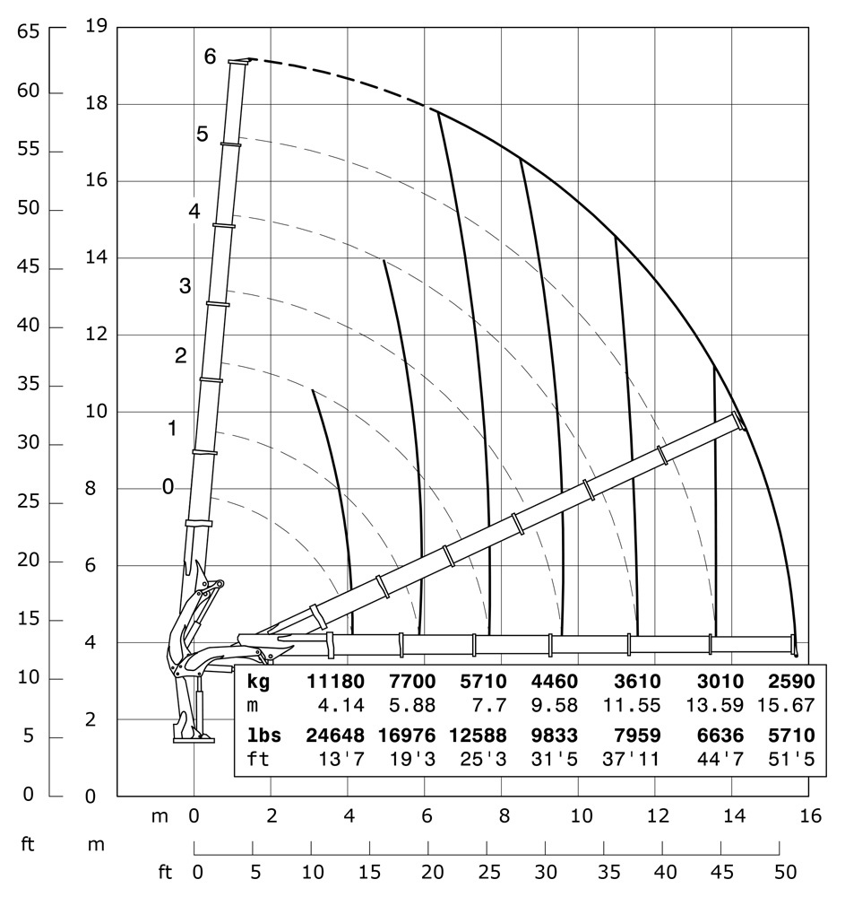 | Гідравлічний виліт | 15670 mm | 51'5" |