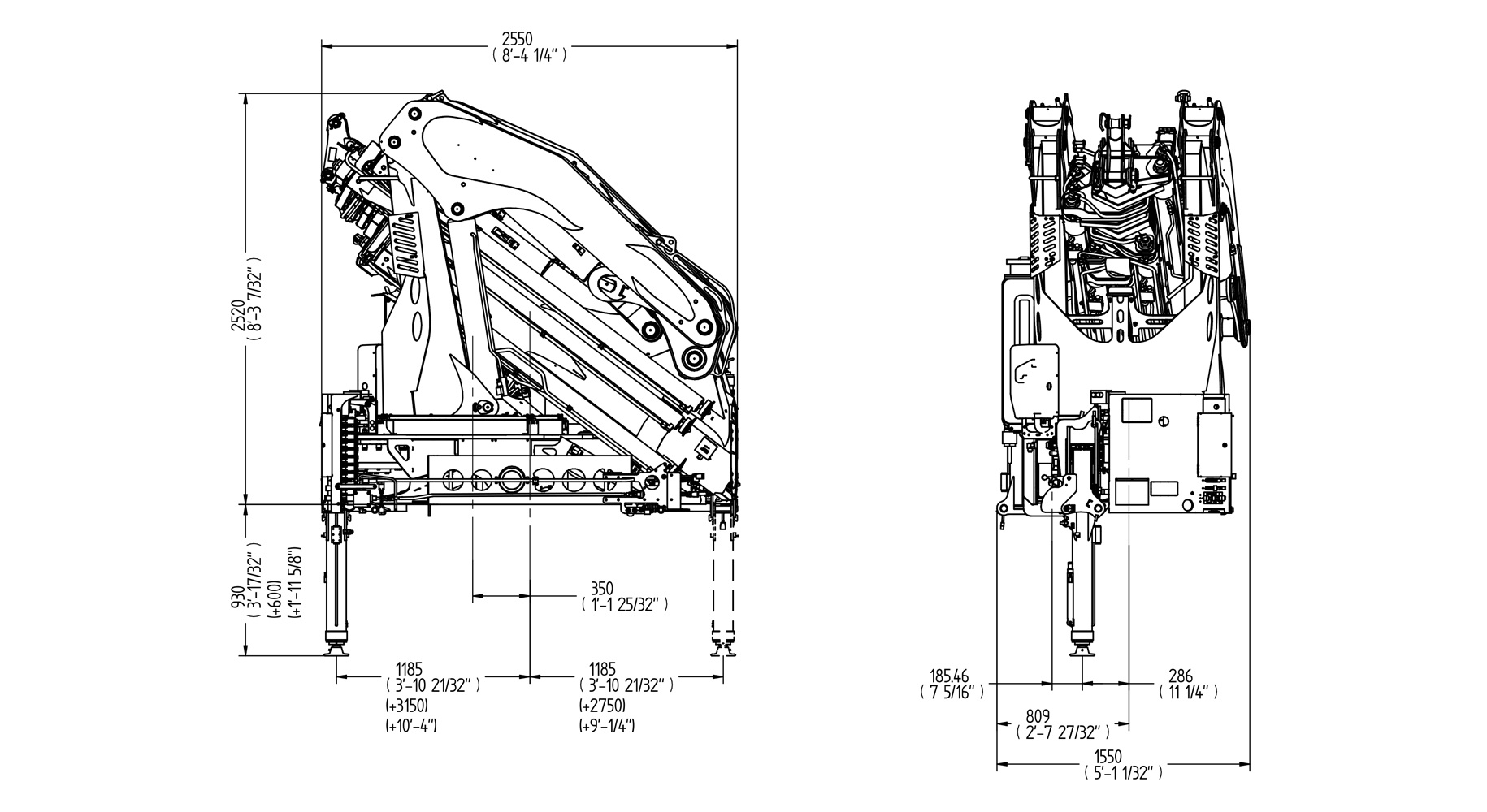| Винос стабілізаторів | 3150 + 2750 mm | 10'4" + 9' |