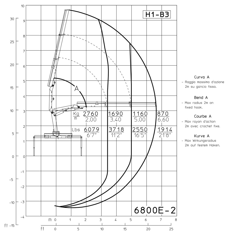 | Гідравлічний виліт | 6600 mm | 21'8" |