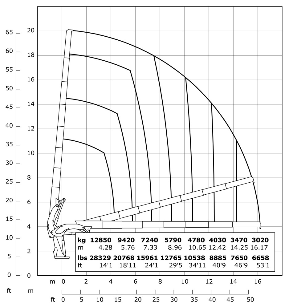 | Гідравлічний виліт | 16170 mm | 53'1" |