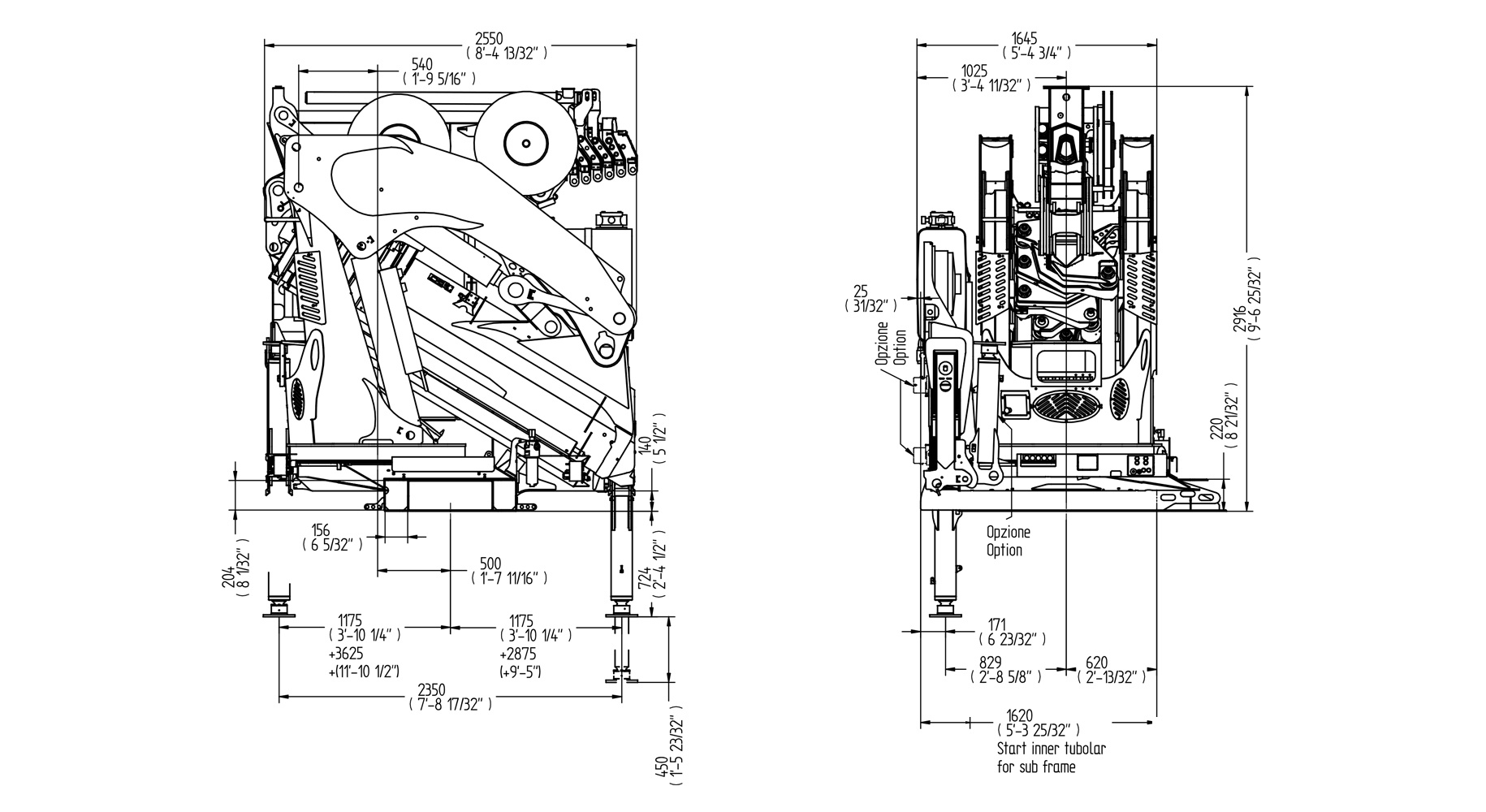 | Винос стабілізаторів | 3625 + 2875 mm | 11'11" + 9'5" |