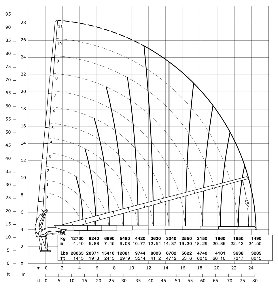 | Гідравлічний виліт | 24500 mm | 80'5" |