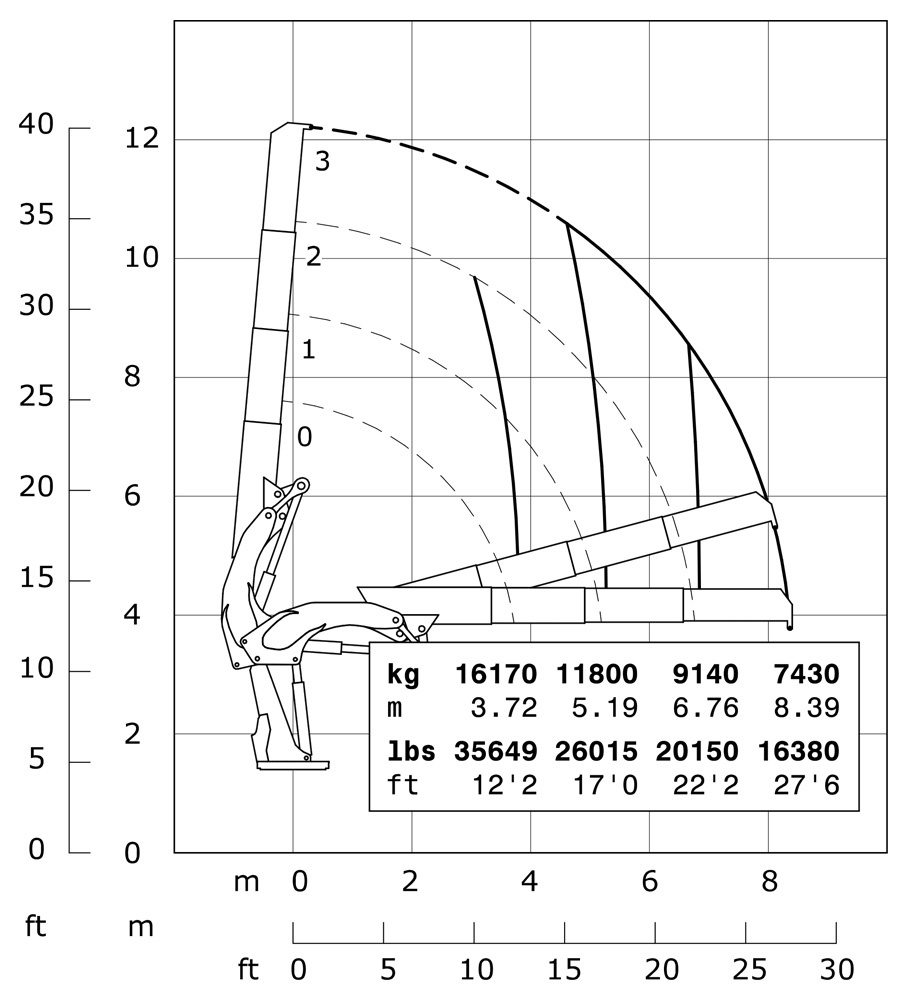 | Гідравлічний виліт | 8390 mm | 27'6" |