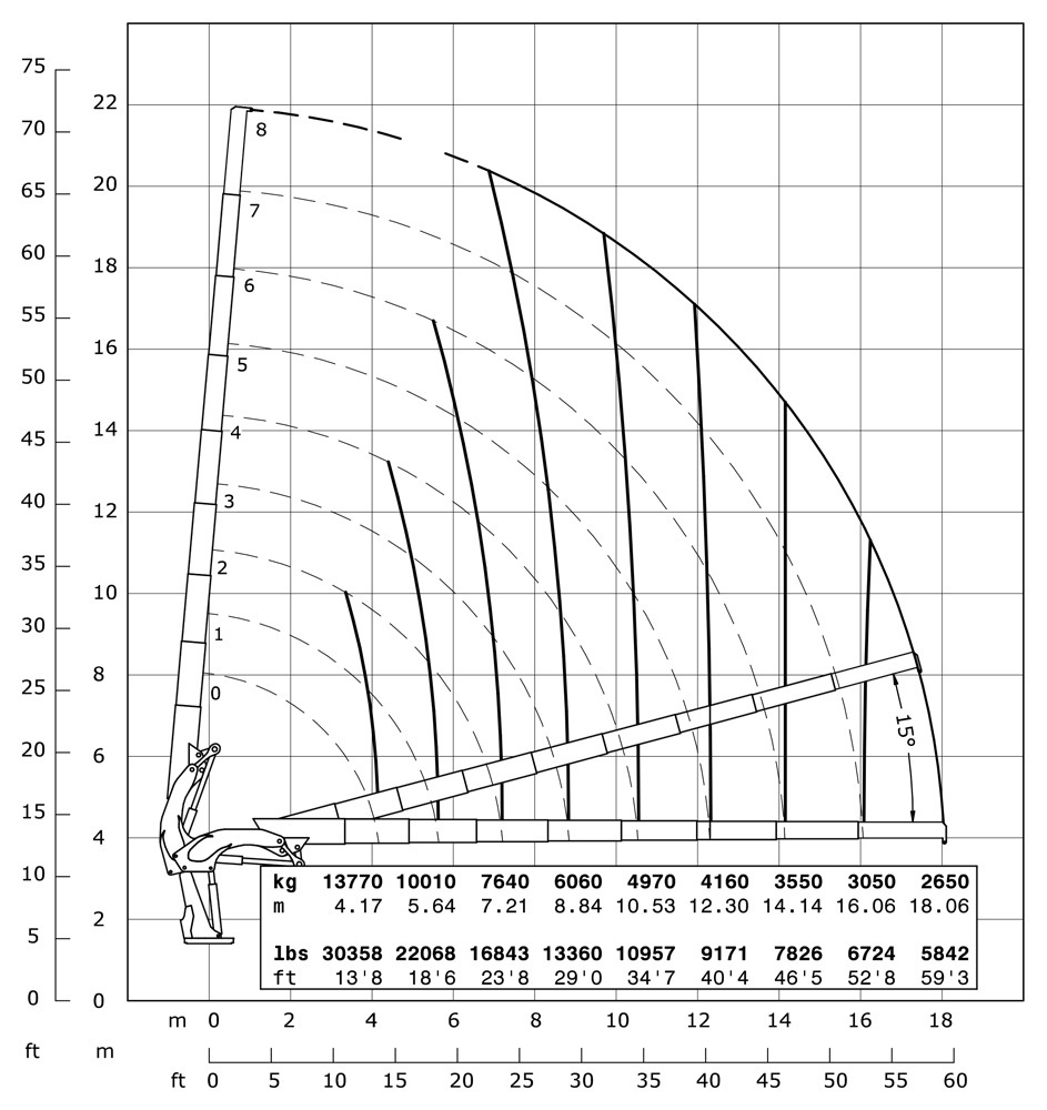 | Гідравлічний виліт | 18060 mm | 59'3" |