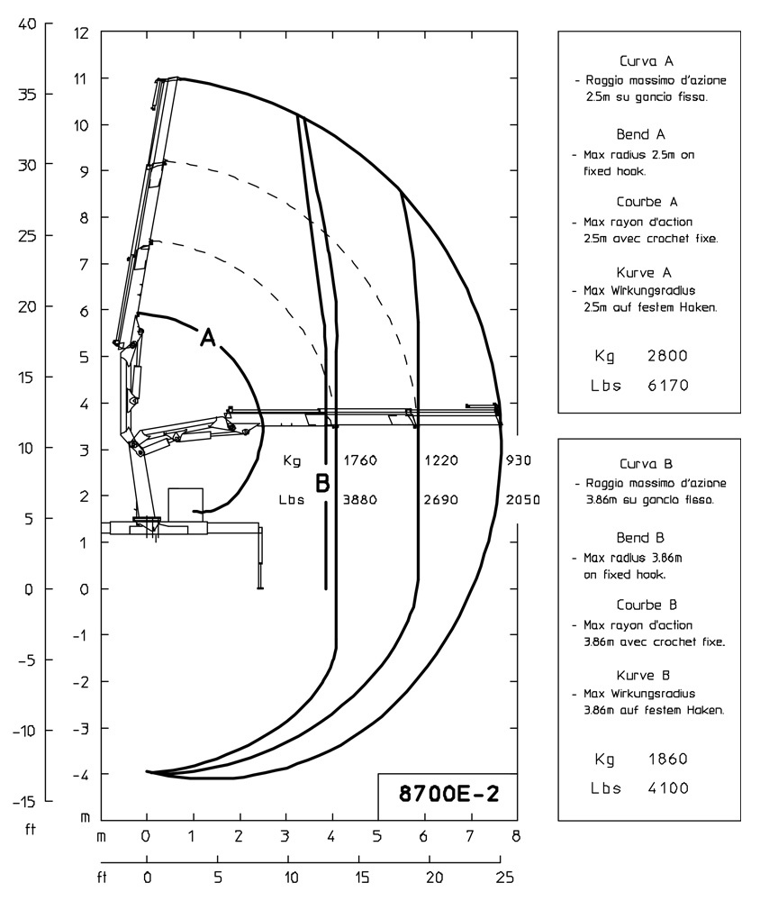 | Виліт із ручними подовжувачами | 13710 mm | 44'12" |