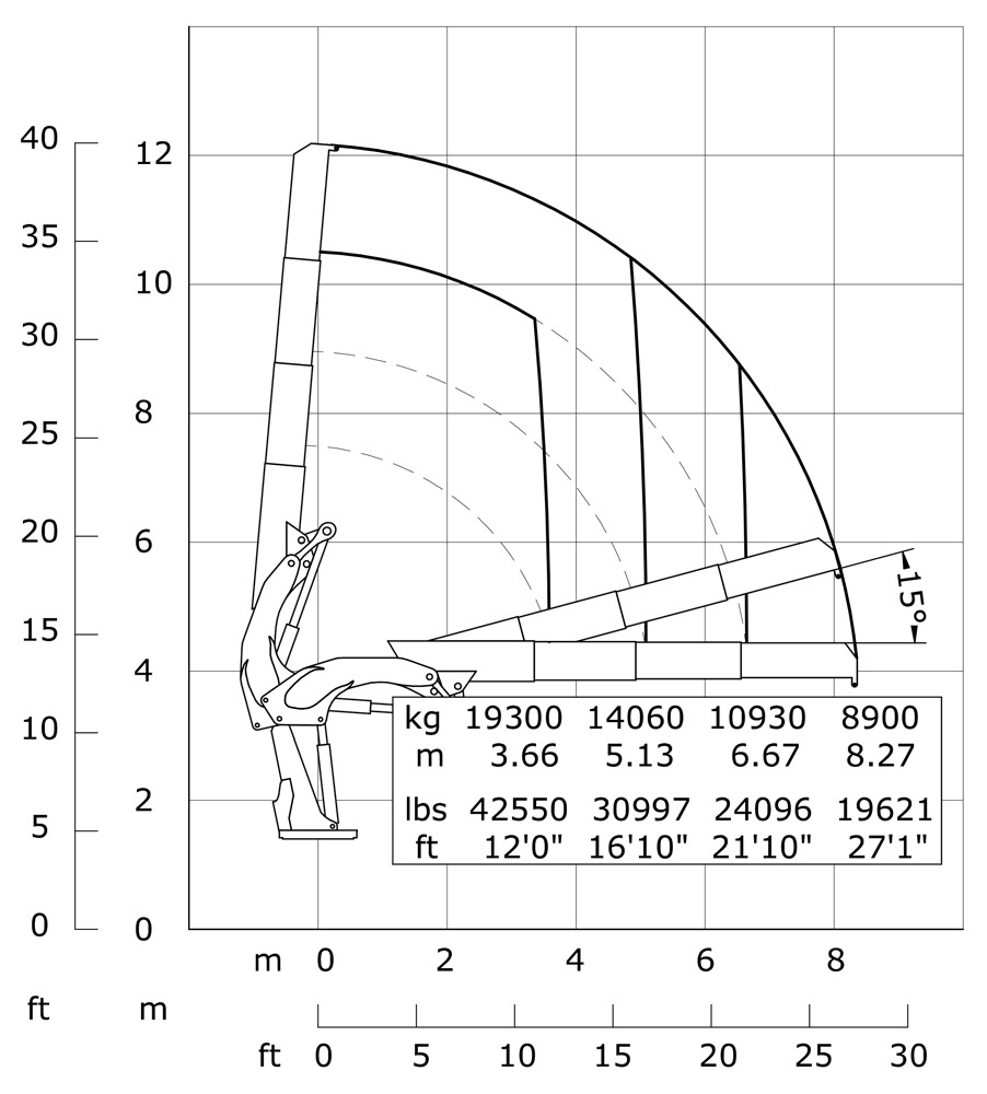 | Гідравлічний виліт | 8270 mm | 27'1" |
