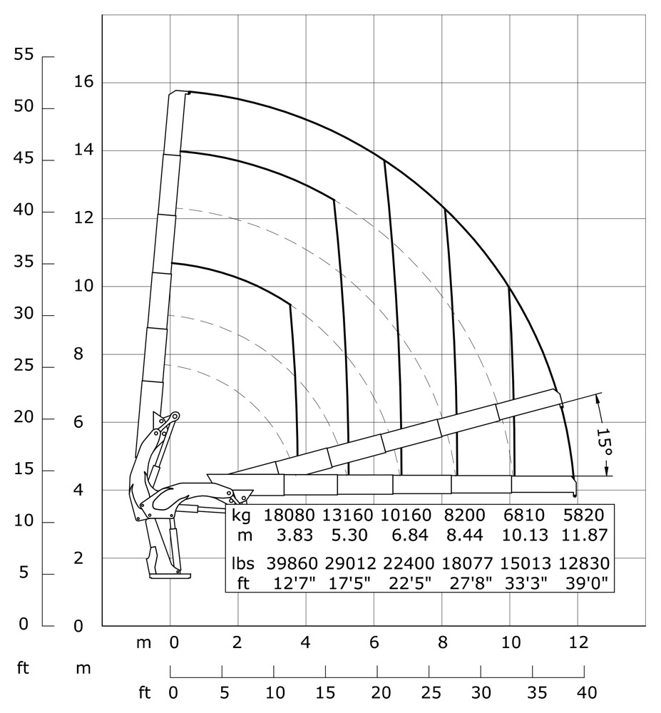 | Гідравлічний виліт | 11870 mm | 39' |