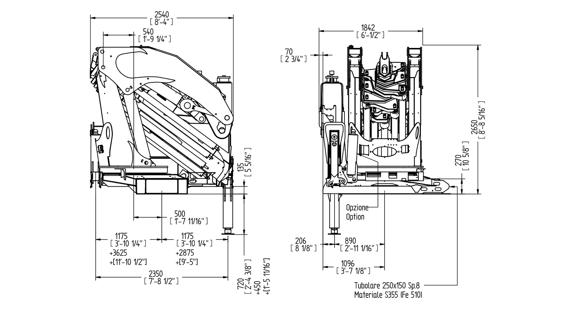 | Винос стабілізаторів | 3625 + 2875 mm | 11'11" + 9'5" |