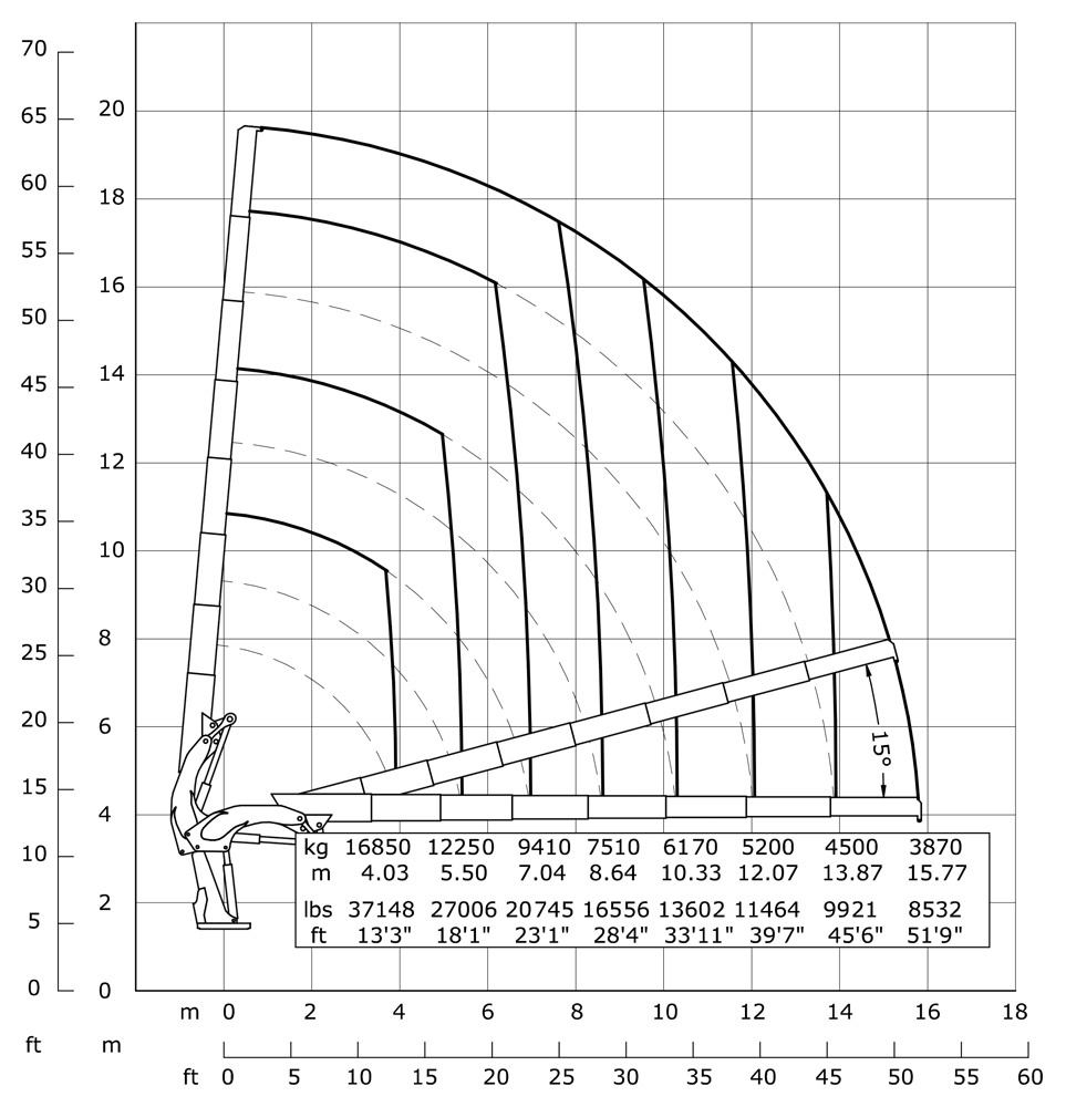 | Гідравлічний виліт | 15770 mm | 51'9" |
