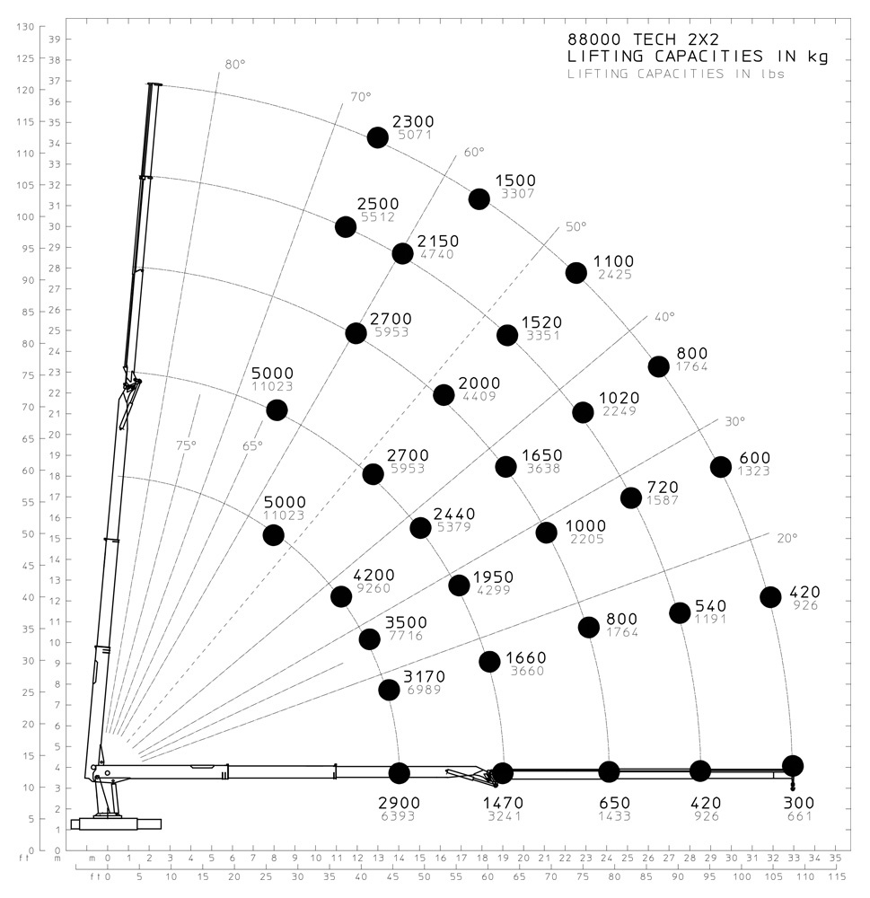 | Гідравлічний виліт | 32960 mm | 108'2" |