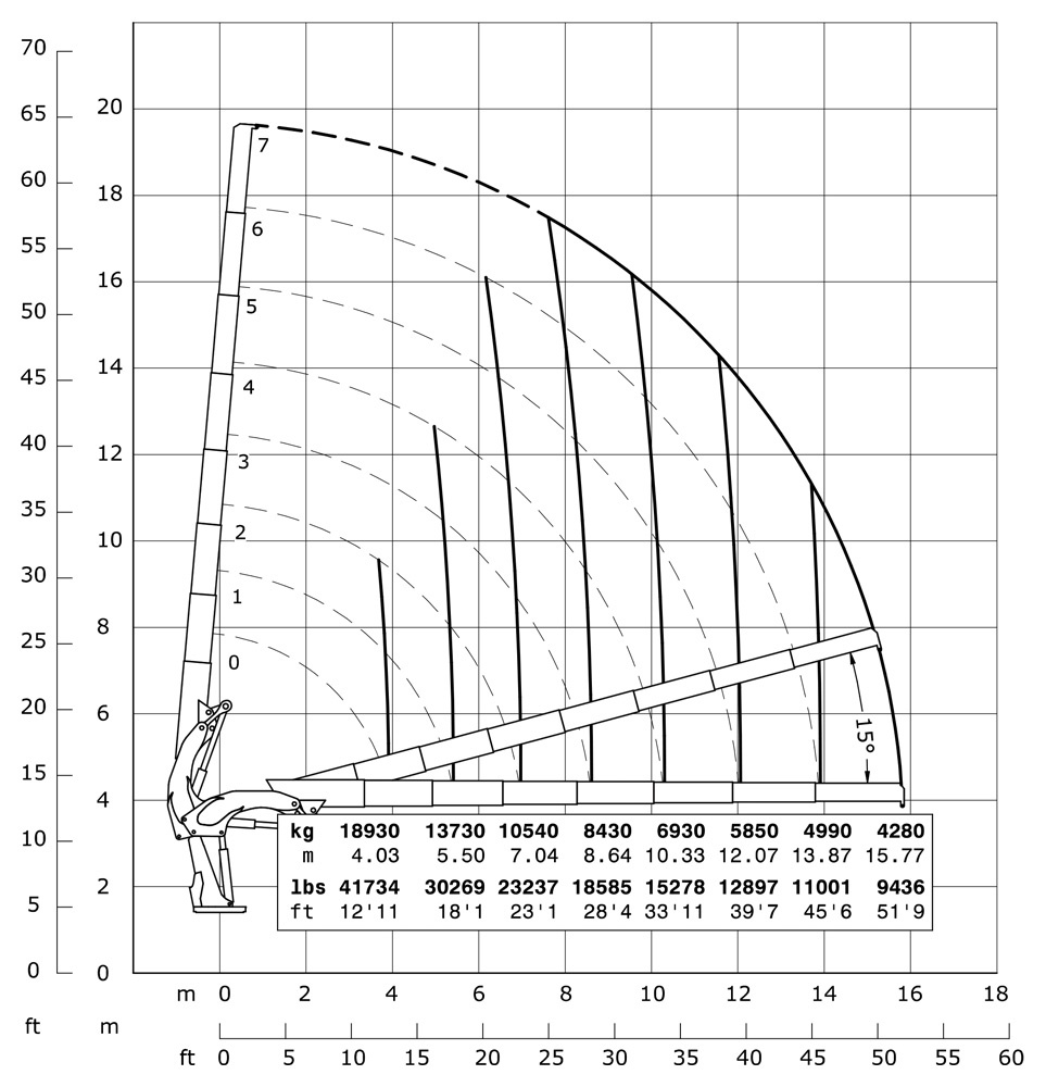 | Гідравлічний виліт | 15770 mm | 51'9" |
